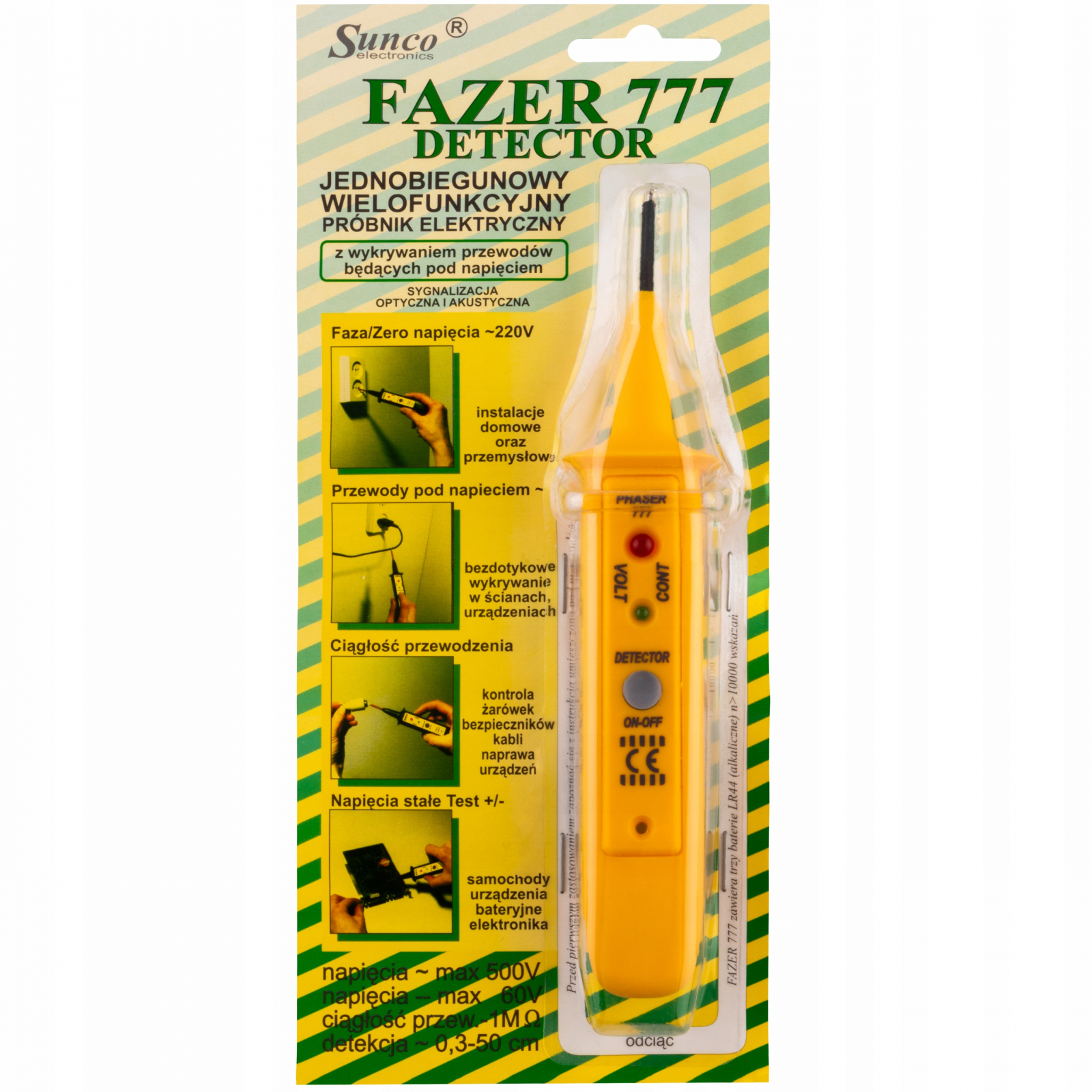 Datorită tehnologiei avansate, detectoarele pot măsura tensiunea fără contact, sau chiar rezistenta de linie, oferind indicarea prezenței tensiunii pentru o utilizare sigură., FAZER777 este alegerea perfectă pentru diagnosticarea cablurilor, identificarea conductoarelor, localizarea întreruperilor de circuit.