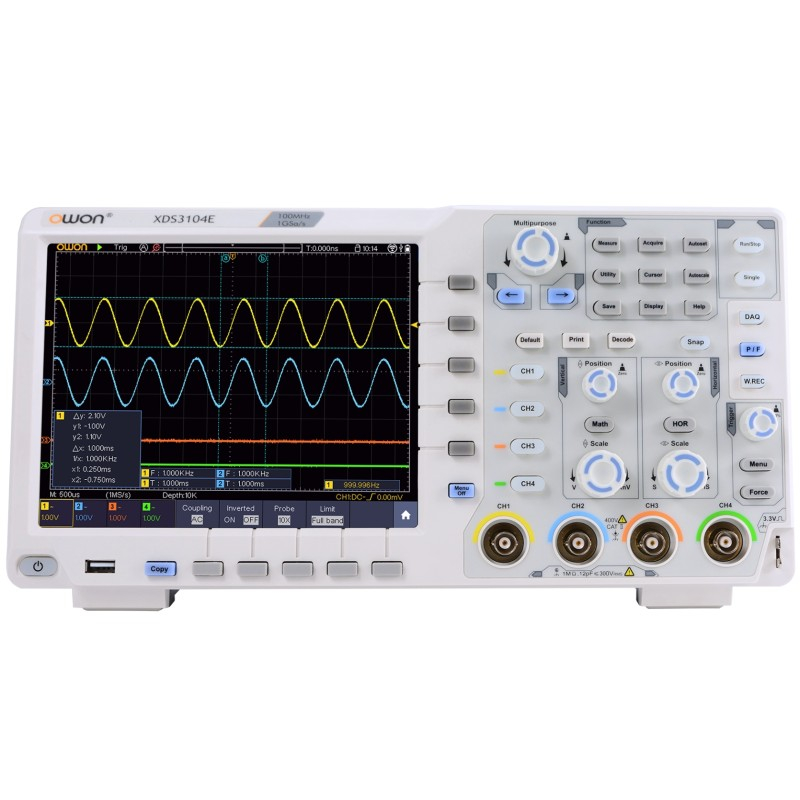 prezentăm osciloscopul digital oWon xds3104e/b – un instrument avansat, ideal pentru profesioniștii și pasionații de electronică care necesită măsurători precise și fiabile. caracteristici principale lățime de bandă de 100 mhz permite captarea precisă a semnalelor de înaltă frecvență, esențială pentru aplicații avansate. rată de eșantionare de 1 gs/s asigură o achiziție de date de înaltă rezoluție, oferind detalii clare ale formelor de undă. rezoluție verticală de 8 biți oferă o precizie standard în măsurători, adecvată pentru majoritatea aplicațiilor electronice. adâncime de memorie de 40 mpts permite înregistrarea și analiza formelor de undă complexe pe perioade extinse de timp. ecran lcd color de 8 inch cu o rezoluție de 800x600 pixeli, oferă o vizualizare clară și detaliată a formelor de undă în timp real. funcționalitate n-in-1 poate funcționa ca osciloscop, generator de forme de undă arbitrare de 25 mhz/50 mhz și multimetru cu funcție de înregistrare a datelor, oferind o soluție completă pentru diverse nevoi de testare și măsurare. conectivitate extinsă include usb host, usb device, port usb pentru pictbridge, lan și vga (opțional), facilitând integrarea în diverse medii de testare și automatizare. funcții de decodare a magistralelor suportă decodarea pentru i2c, spi și rs232, oferind unelte puternice pentru analiza protocoalelor de comunicație. oWon xds3104e/b este proiectat pentru a oferi performanțe superioare și o utilizare intuitivă, fiind alegerea ideală pentru aplicații care necesită precizie și fiabilitate în analiza semnalelor electronice.